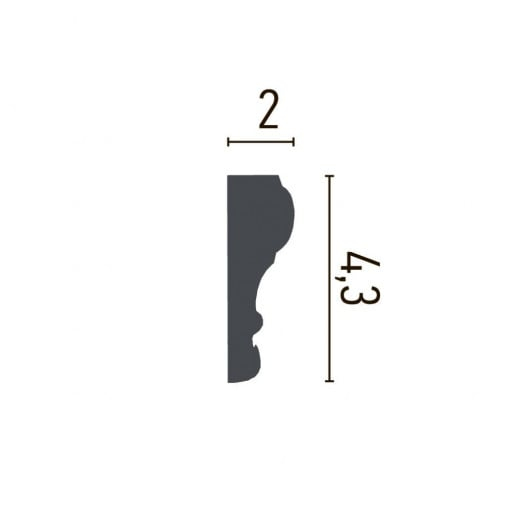4.3 × 2 × 200 cm | Poliuretan | Clasic, decorativ, rafinat | Pregătit pentru vopsire | Adeziv pentru decoruri rigide |