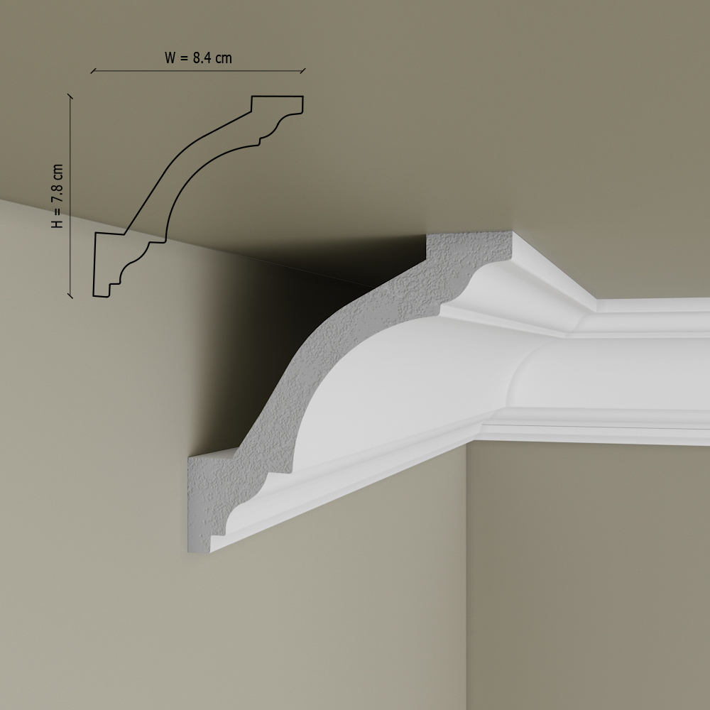7.8 × 8.4 × 200 cm | Polimer rigid de înaltă calitate | Elegant, clasic, rafinat | Pregătită pentru vopsire | Adeziv pentru decoruri rigide (Fixx&Go) |